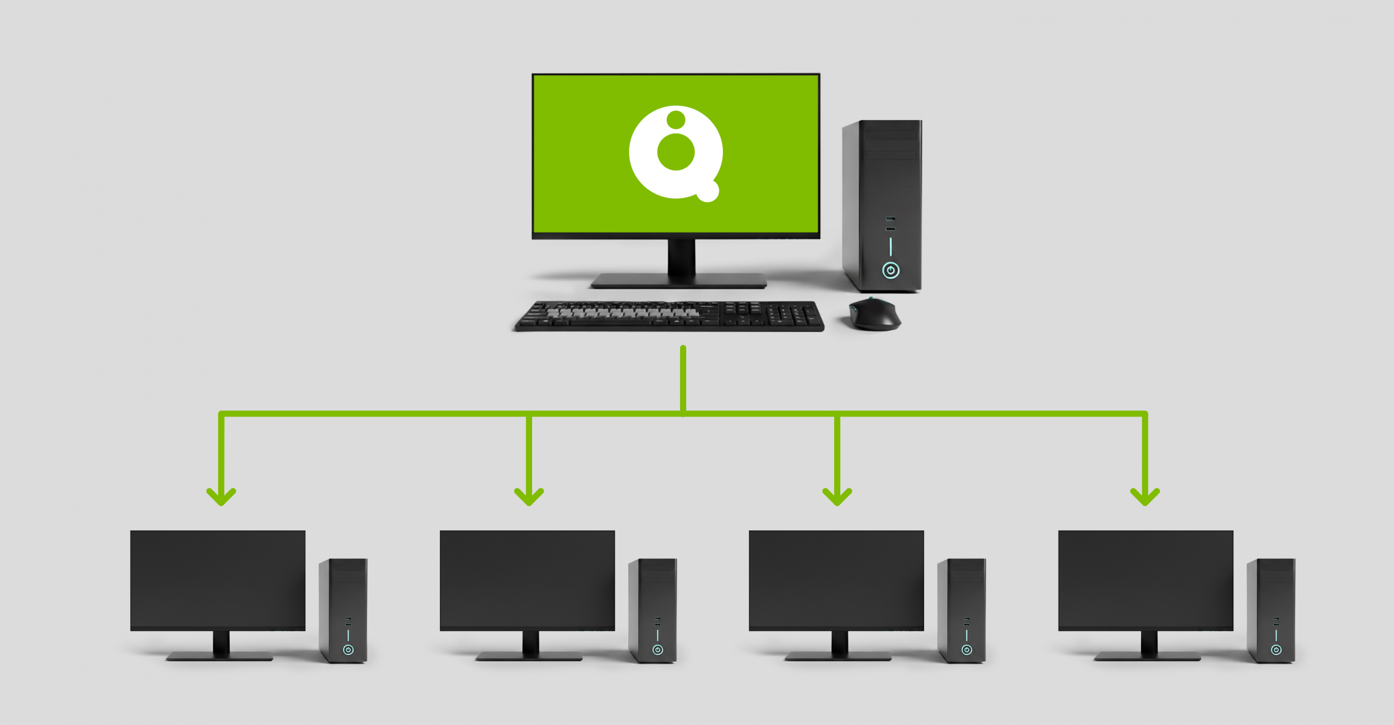 Install the Q8 Agent on the Windows computers that you want to control remotely. Install Q8 Vista on a Windows computer that you want to use a Soft-KVM. You will be able to shadow other Windows computers’ screen which have Q8 Agent installed, use your keyboard and mouse to manage those Windows computers as well.
