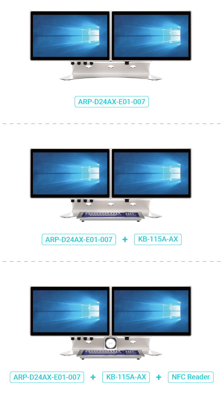 Ordering Information ARP-D24AX-E01-007 LCD Display Dual 24" LCD / 1920 x 1080 Touch Screen Projected Capacitive Enclosure 316L Stainless Steel CPU Intel Celeron J1900 @ 1.99GHz / Atom E3845 @ 1.91GHz CPU Memory 4GB DDR3 Storage N/A Remote Boot ThinManager Ready Power Supply 110~220V AC  -